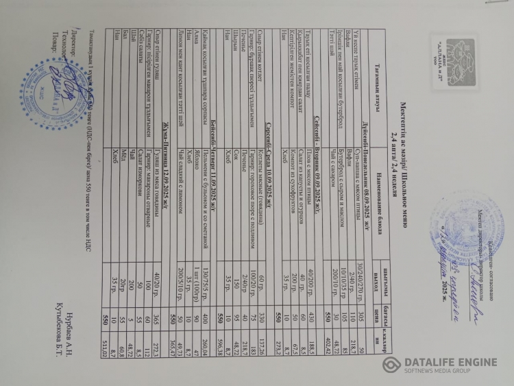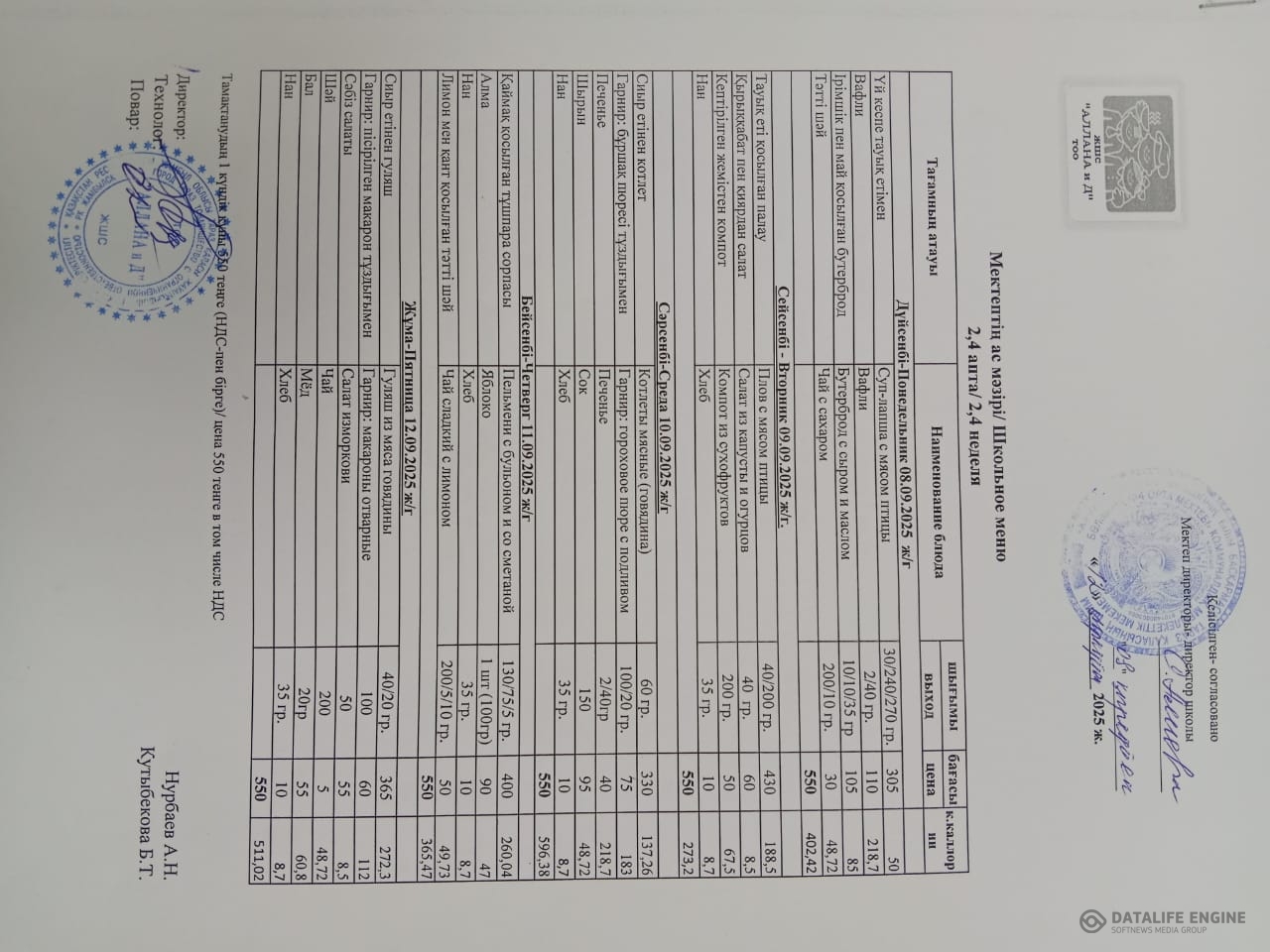 Апталық ас мәзірі » Коммунальное государственное учреждение "Средняя школа №4" отдела образования города Тараз Жамбылской области