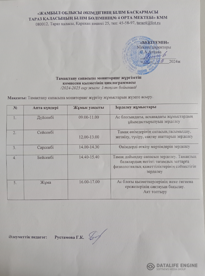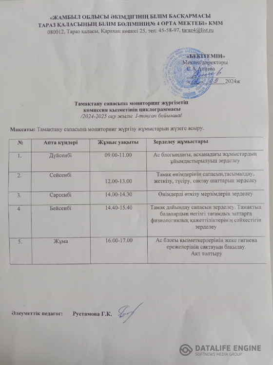 02 сентябрь 2024 0 1 2 3 4 5 Тамактану сапасына мониторинг жургізетін комиссия қызметінің циклограммасы